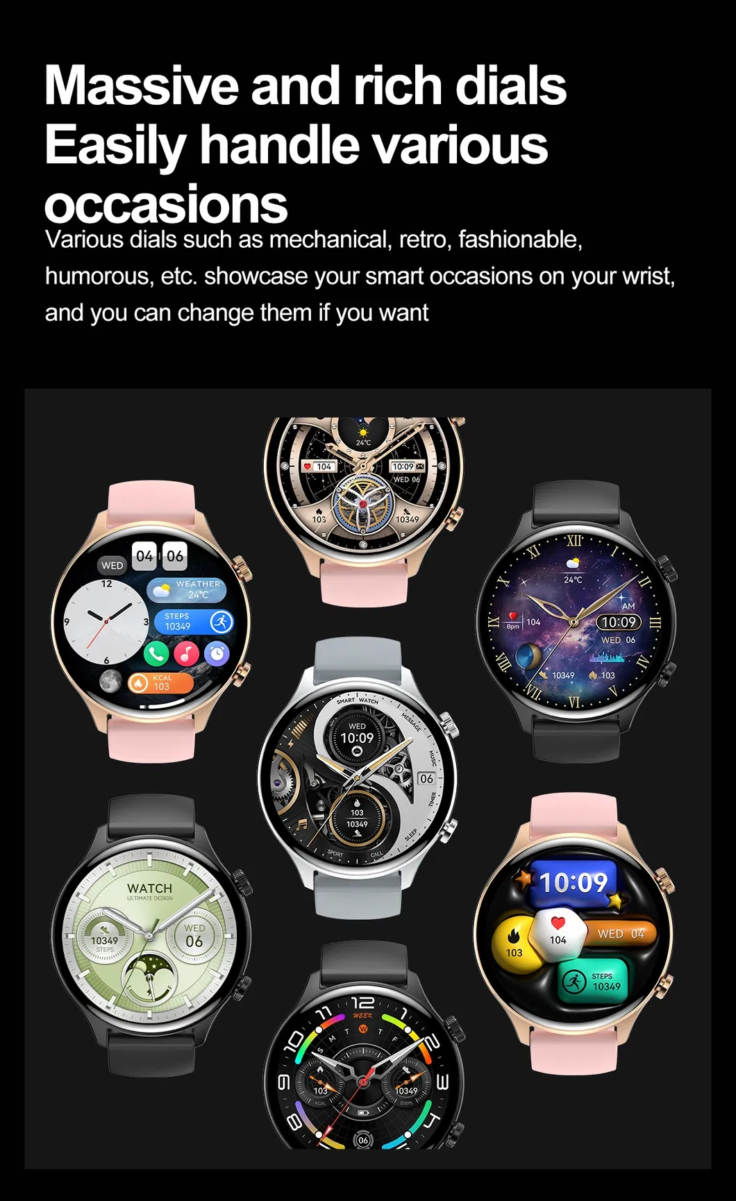 Promotion Gift HK75: IP68 waterproof senior healthcare smart watch featuring advanced monitoring for heart rate, blood pressure, and SPO2. Equipped with an AMOLED full touch screen and long-lasting battery life.